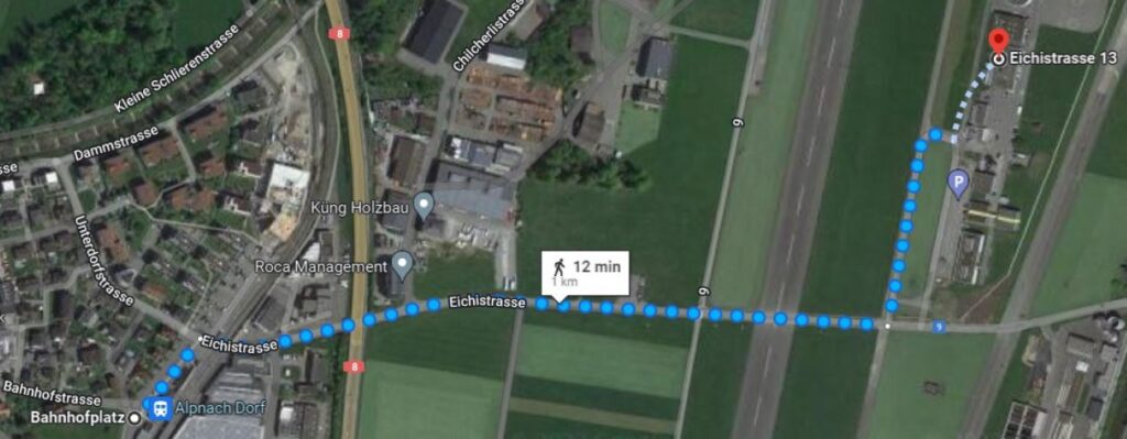 Wegbeschreibung Bahnhof Alpnach > Militärflugplatz